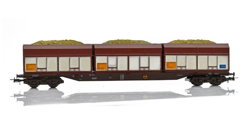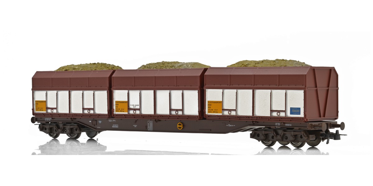 NMJ Topline modell av NSB Rps 31 76 393 3 450-4 med Finsam fliskasser, gammel type. I tillegg blir denne modellen levert med flis i kassene.